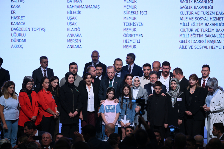 Erdoğan, Beştepe Millet Kongre ve Kültür Merkezi’nde düzenlenen Şehit Yakınları, Gazi ve Gazi Yakınlarının Kamu Kurumlarına Yerleştirilmesi Kura Töreni’ne katıldı.