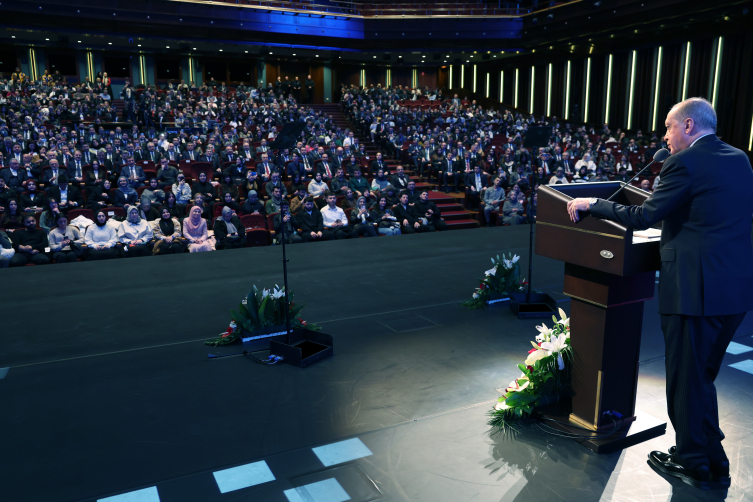 Cumhurbaşkanı Erdoğan, konuşmasında milli şair Mehmet Akif Ersoy’un, çalışmanın önemini anlatan “Cemaat intibah ister, uyanmaz gizli yaşlarla / Çalışmak, başka yol yok, hem nasıl canlarla başlarla” dizelerini hatırlattı. Başarının, zahmetin bir meyvesi olduğunu belirten Erdoğan, “Rahmet zahmetin neticesidir. Unutmayın; ‘Zahmetsiz rahmet olmaz’ atasözümüz, bu gerçeğin çağlardan süzülüp gelen bir başka ifadesidir.” diye konuştu.